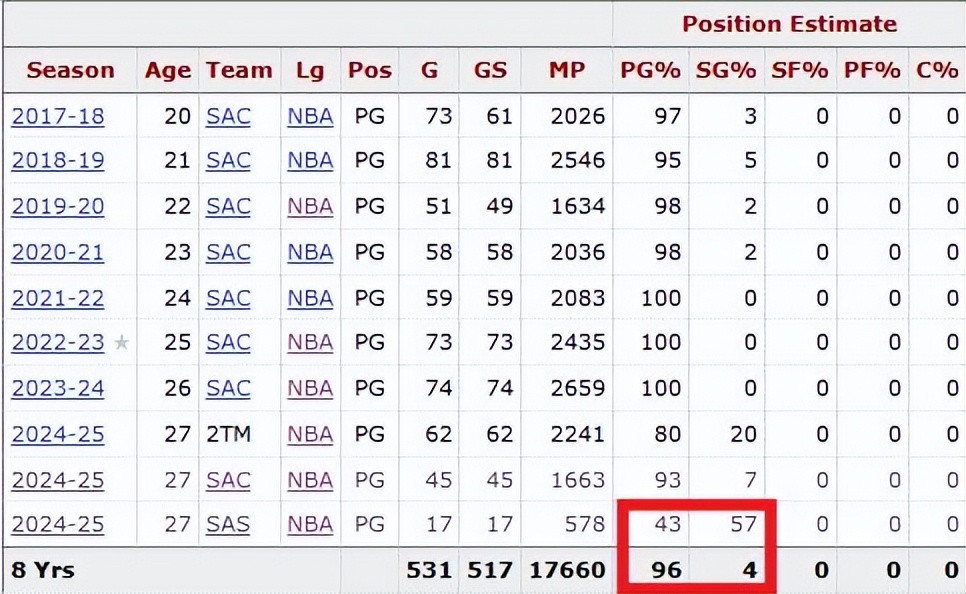 , that is, combat power, Fox averaged 21.5 points, 3.9 rebounds and 6.1 assists in 531 games so far in his career. In fact, the average average of 23+4+6 has never been lower than 23+4+6 since the 19-20 season. In short, the combat power is still good. That is, the combat power is not bad, this is the third one.