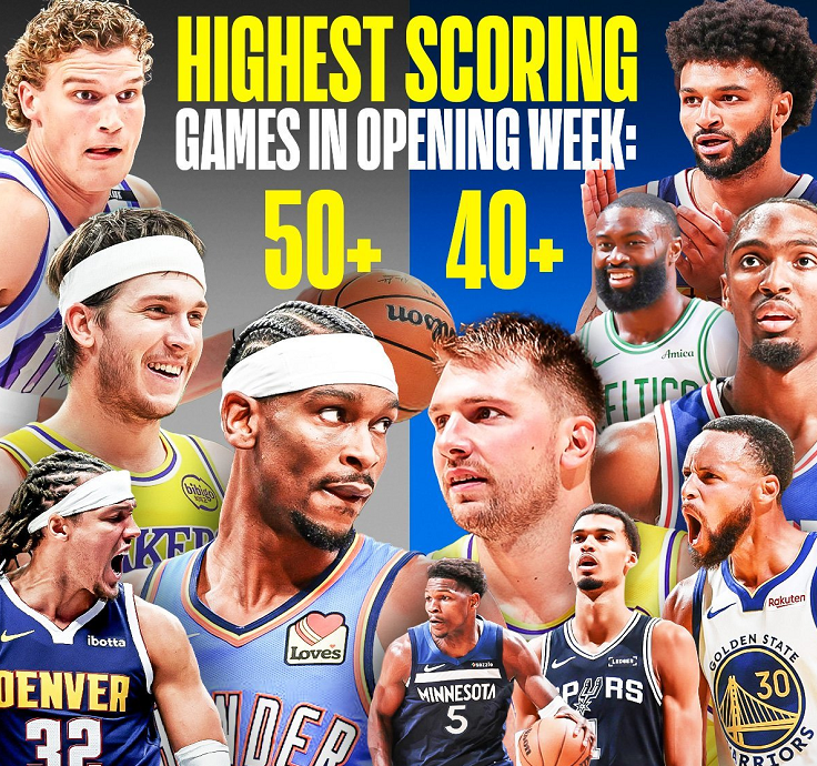 In the first week of the season, the scoring feast is coming in advance. According to statistics from the NBA's official website, a total of four 50-pointers were born in the league this week. They are SGA (55), Reeves (51), Markkanen (51) and Gordon (50). At the same time, the league also has Doncic, Maxi, Antetokounmpo, Jaylen Brown, Curry, Hua Zi, Murray, Bunyama, Thomas and many others who scored 40+ in a single game, and an NBA god-level record was born. According to statistics from the NBA's official website, there were 16 40+ games in the first week of the new season, the most in NBA history. According to the current momentum, there may be many 60-pointers or even 70-pointers born in the new season.