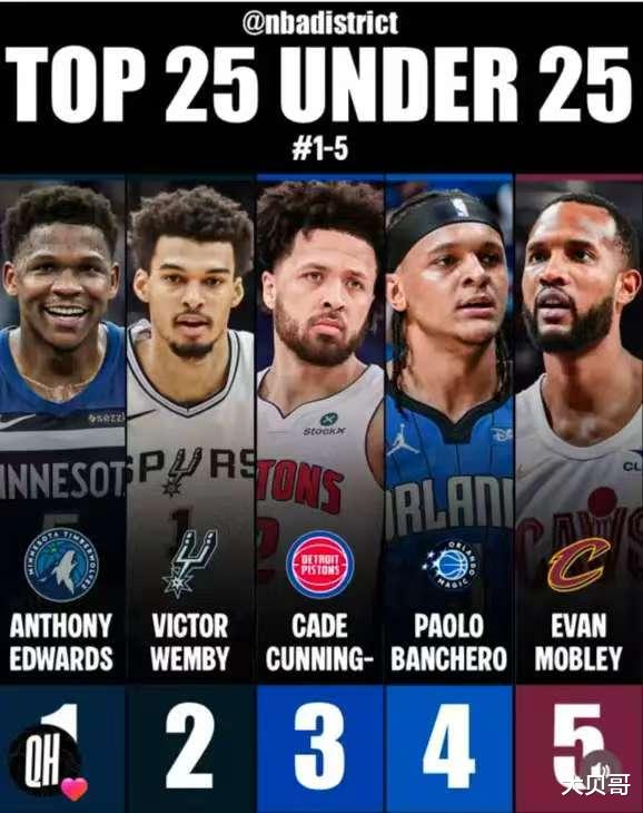 US media ranked 25 top stars under the age of 25: The strongest Mobley is only ranked fifth, and the top four are all No. 1 picks!