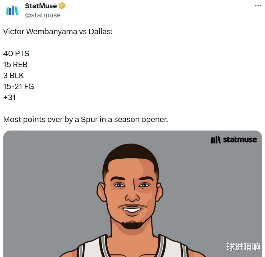With this performance, Wenbanyama broke many NBA historical records in one game, even surpassing superstars such as Duncan and David Robinson to become the first player in the history of the Spurs.