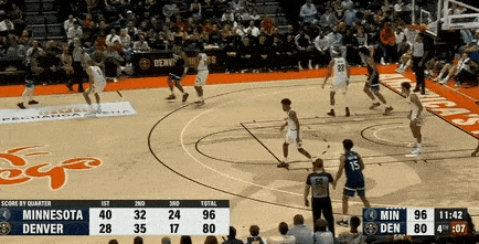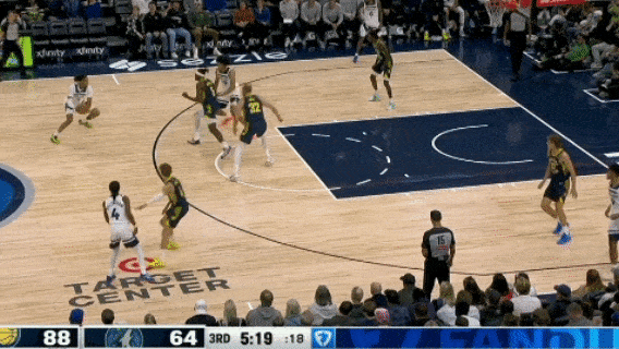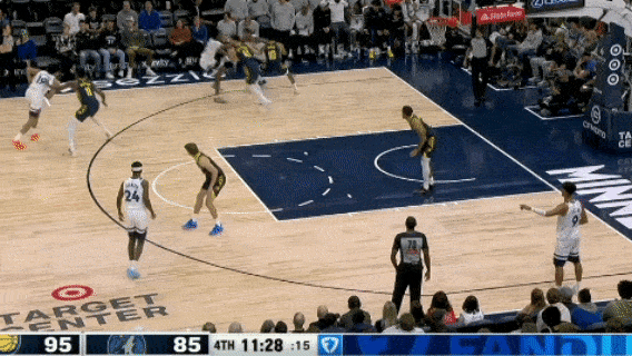 When the Timberwolves failed to complete the first wave of fast breaks, center Zikarski responded at the top of the arc, turned around and gave Zhuzan the follow-up, and hit a three-pointer!