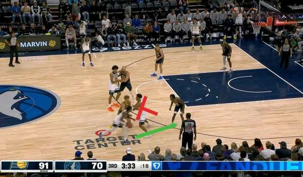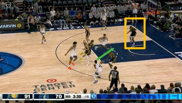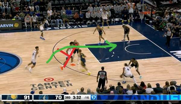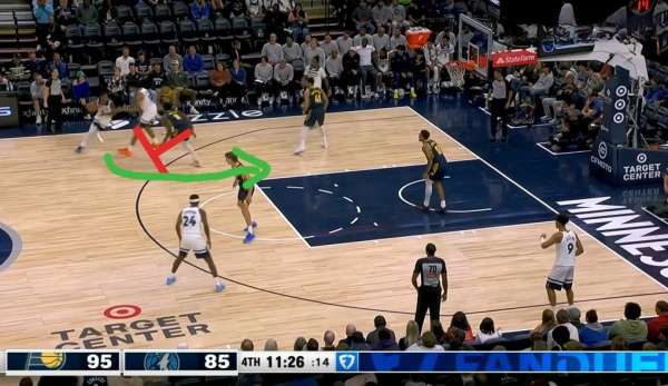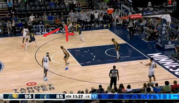 Judging from the second preseason game, Zhuzan has gained a good tactical position in the Timberwolves. He is the tactical execution point in the second team, and many offenses are launched around him. Let's take a look at it frame by frame.