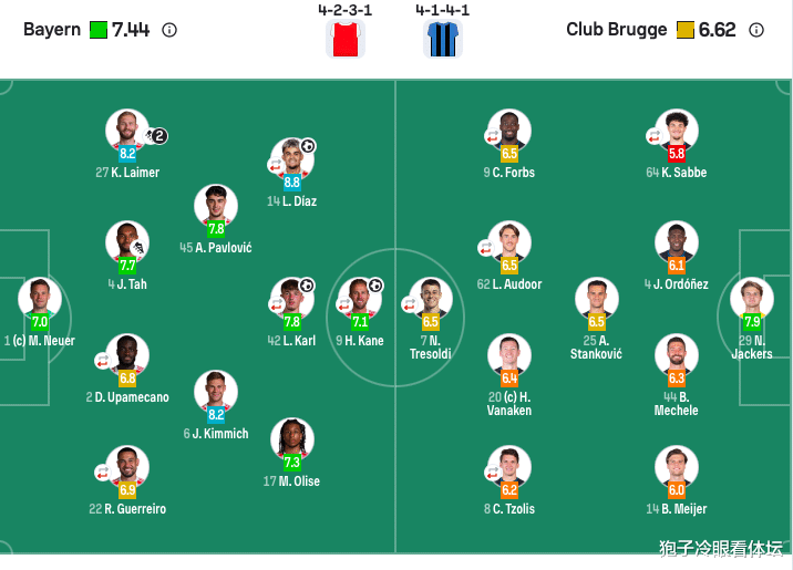 In the early morning of October 23, the third round of the Champions League continued, with Bayern playing against Club Brugge at home. In the 5th minute, 17-year-old Karl made a splash in the world. Nine minutes later, Kane outflanked and scored. In the 34th minute, Laimer made a double assist and Dias scored with a blast. In the 79th minute, Jackson added the icing on the cake. In the end, Bayern defeated Bruges 4-0 without any blood, starting the Champions League with three consecutive victories and winning 12 games in all competitions this season.