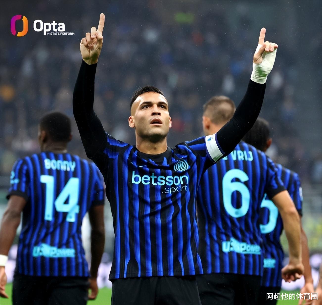 As the referee whistle sounded, Inter Milan started very smoothly; in the 6th minute, Barrera made a straight pass from the outside in the middle circle, Boni counterattacked from the left and broke through with a cross from the cross, Lautaro rushed to the goal, 1:0! After recovering from injury, Lautaro has scored goals in three consecutive rounds of games; at the same time, Lautaro has scored 158 goals for Inter Milan, rising to the fifth place in the team's history; Mazzola is only 2 goals away from fourth place.