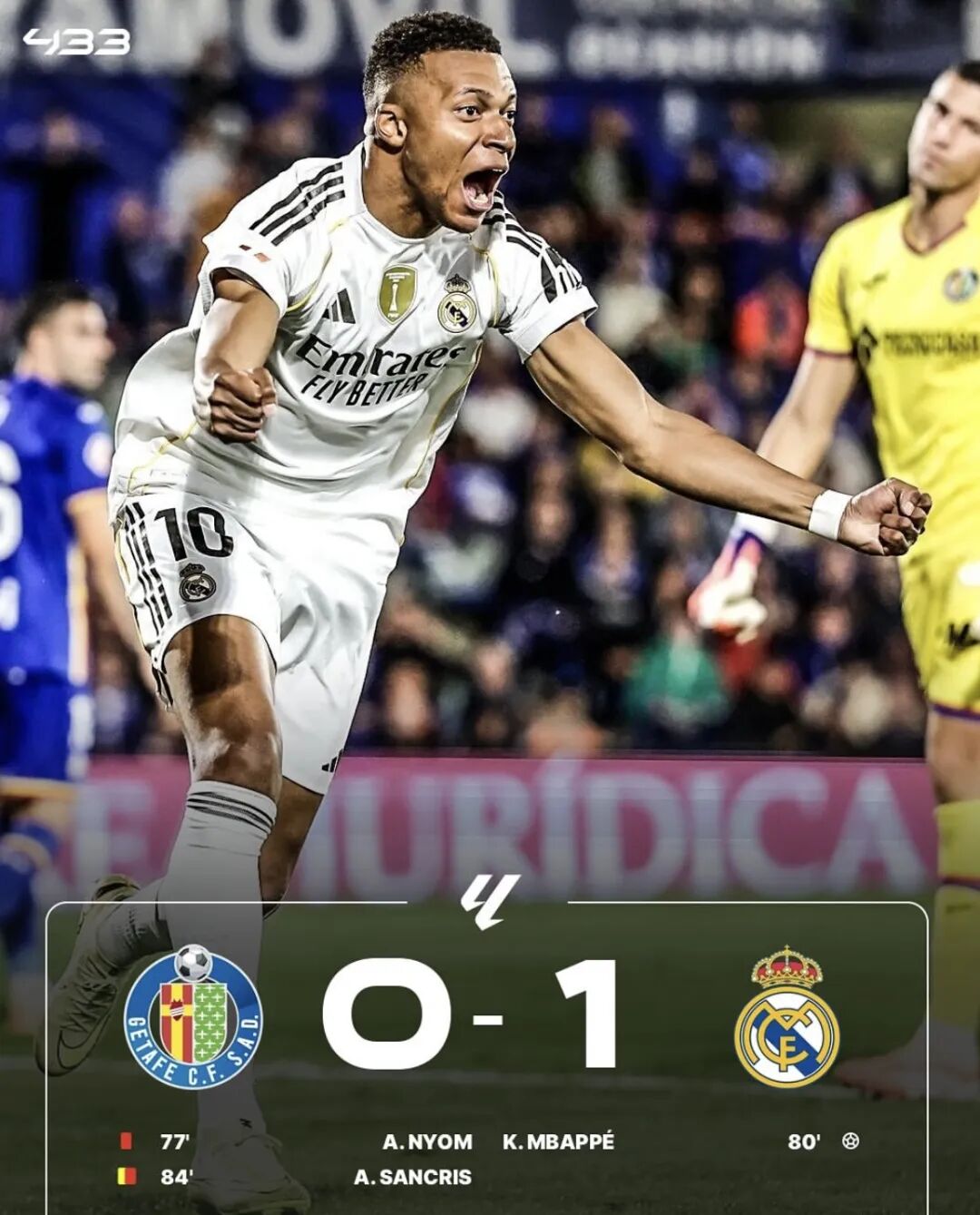 In the 9th round of La Liga, Real Madrid challenged Getafe away. In the first half, the two sides ended in a goalless draw. In the second half of the game, Njom came off the bench and fouled Vinicius. It was not until the 80th minute that Mbappe scored a goal.