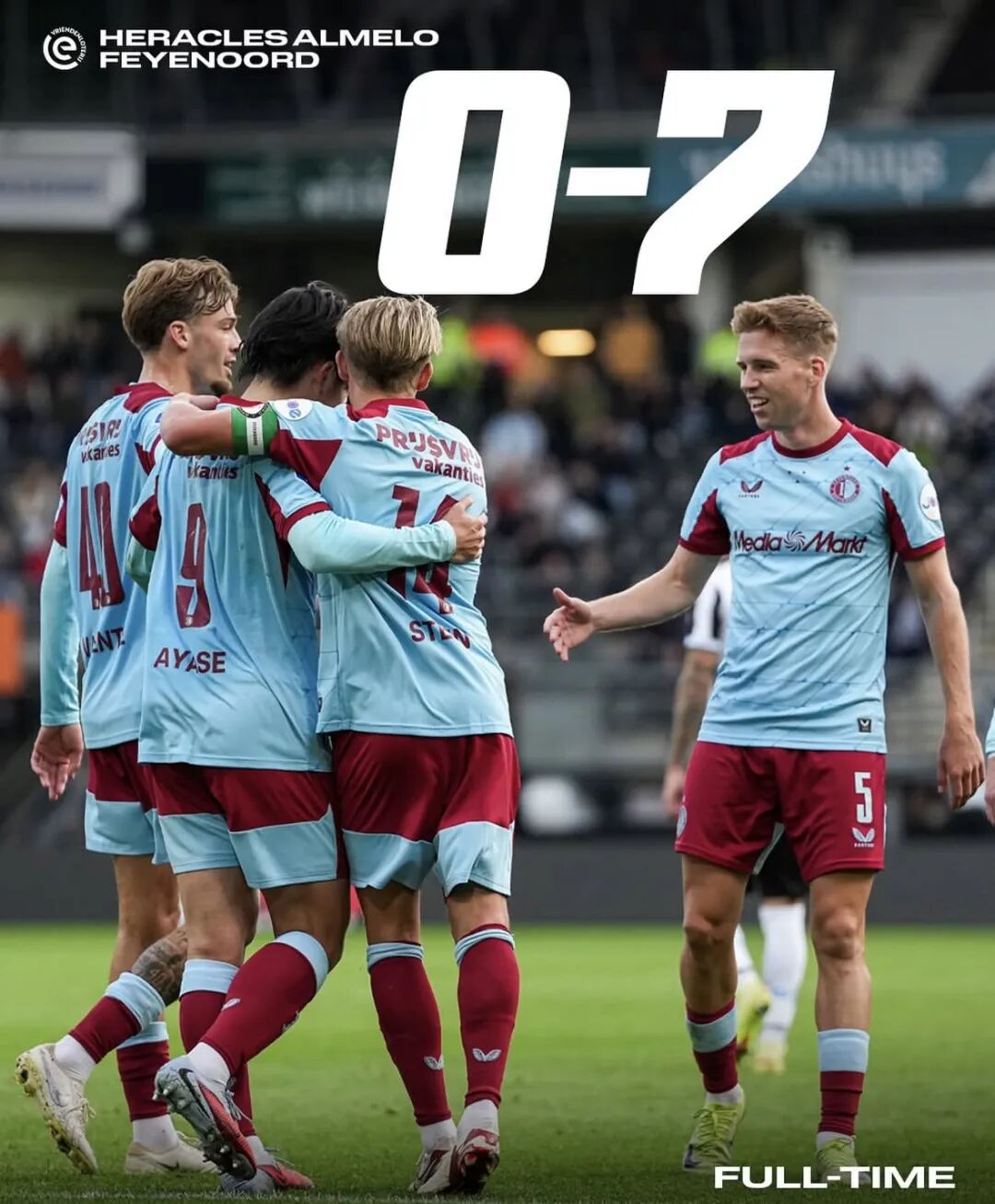 In the end, Feyenoord defeated their opponents 7-0 in the away game and led the Eredivisie standings with 25 points.