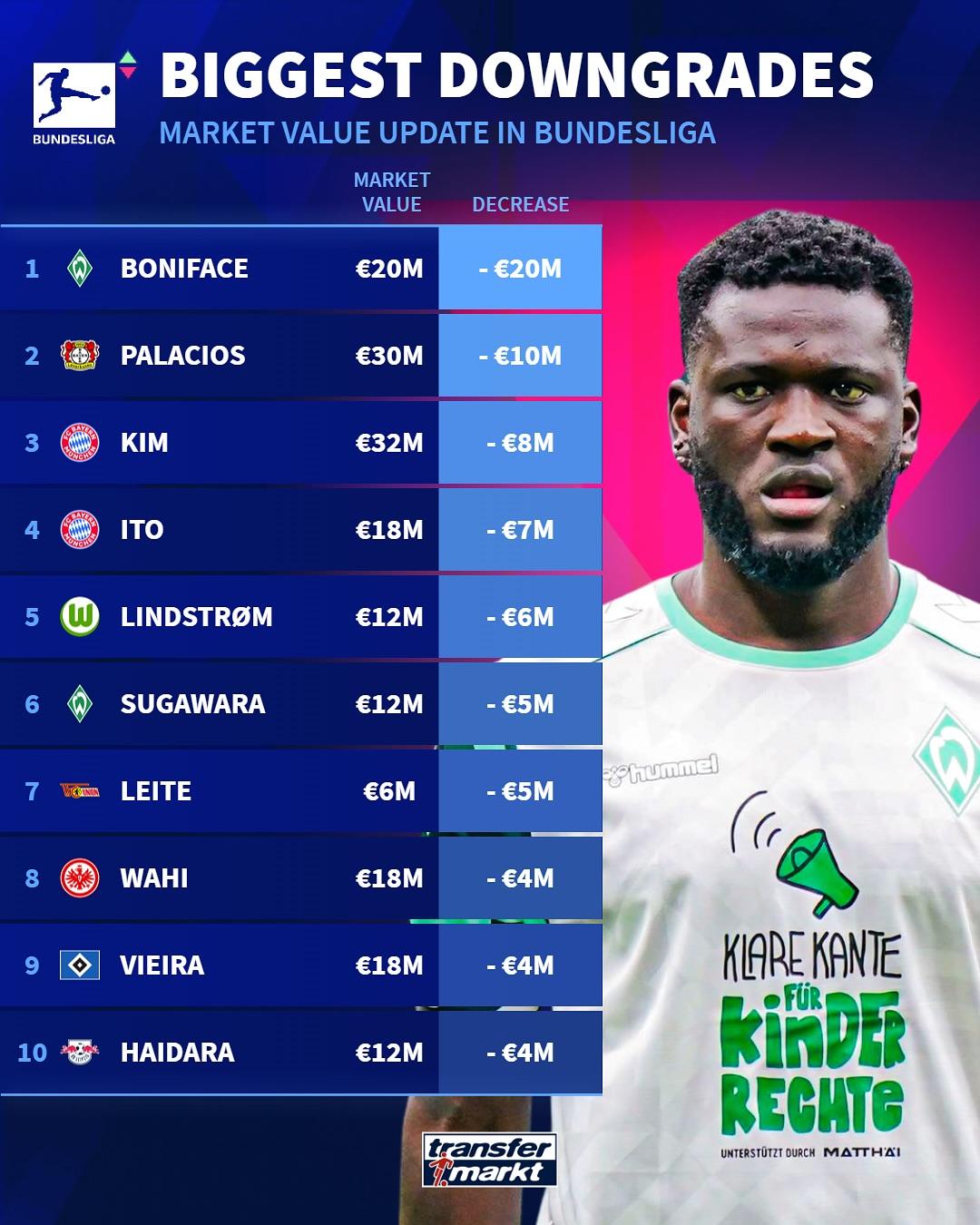 Boniface (Werder Bremen) - 20 million euros (down 20 million)