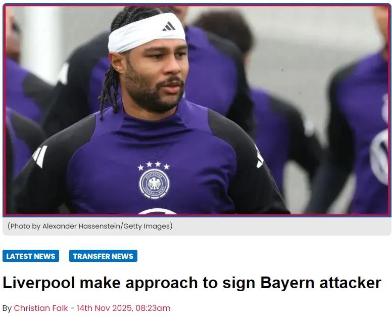 Falk said that both Liverpool and Juventus have inquired about Gnabry's situation, and Bayern is willing to offer him a two-year contract, but only if the player accepts a salary cut.
