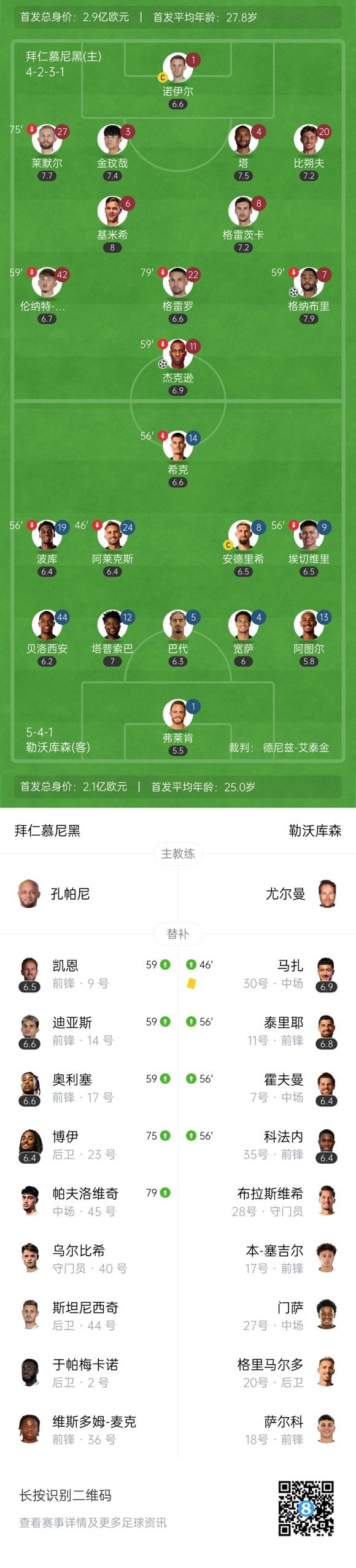 November 2 News In this round of Bundesliga, Bayern defeated Leverkusen 3-0. Bayern still easily won the game despite rotating Kane, Dias, and many other main players, and even led by three goals at halftime.