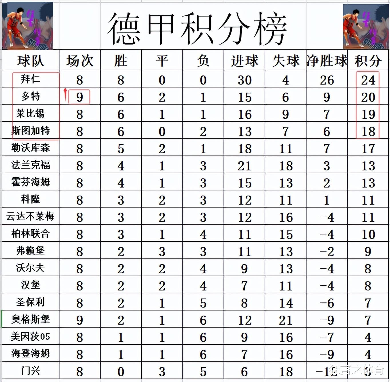 In terms of the standings, Bayern continues to maintain a complete victory. They have topped the list with 8 consecutive victories. After Dortmund won the first game today, they temporarily surpassed Stuttgart and Leipzig and rose to second place, 4 points behind Bayern. Augsburg, which lost, is still hovering on the edge of the relegation zone, ranking fourth from the bottom with only 3 points more than Mainz.