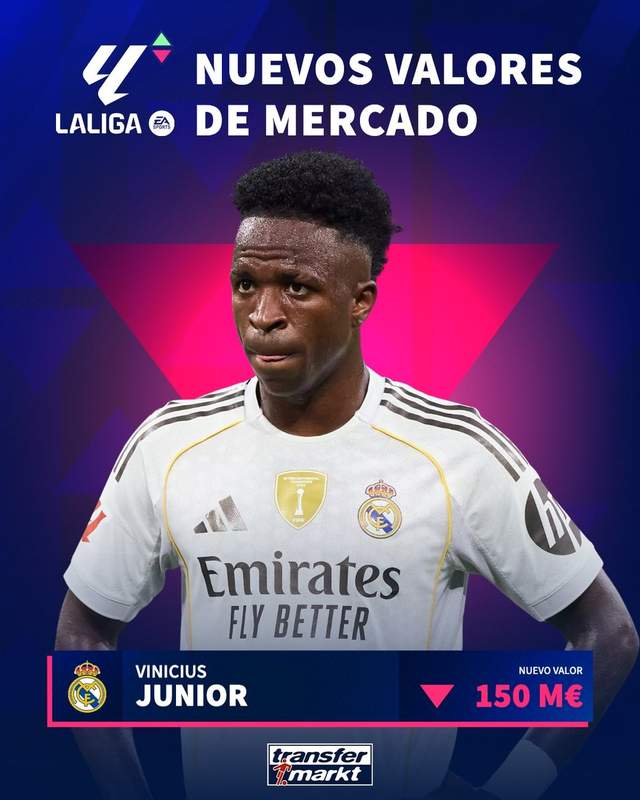 Germany updated the value of La Liga players on October 2. Among the top ten players in La Liga, Brazil's twins, the only one among Real Madrid, has fallen, among which Vinicius fell by 20 million euros, from 170 million euros to 150 million euros.