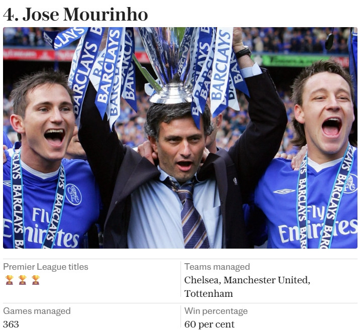 4. Mourinho (Chelsea, Manchester United, Tottenham)