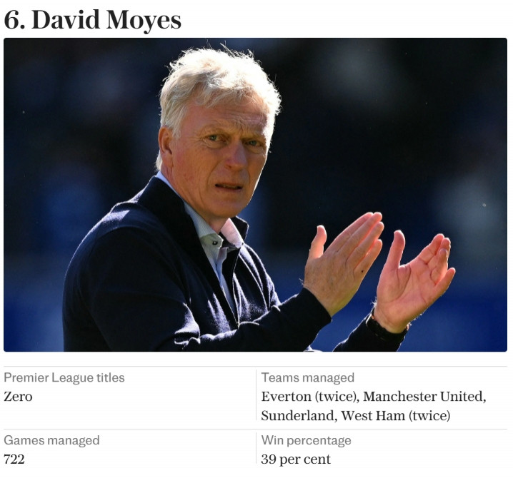 6. Moyes (Everton, Manchester United, Sunderland, West China Ham)