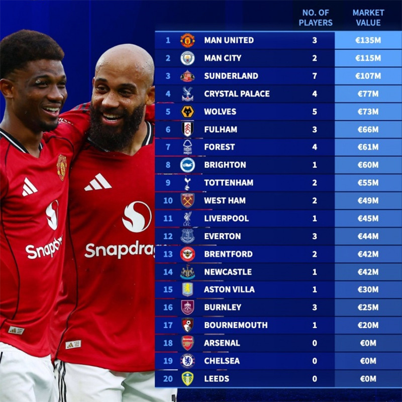 Another problem is that Sheshko is injured and is expected to miss a month. Exactly one month later, the African Cup of Nations will start again. Mbemo, Diallo and Mazrawi are absent. They are the most influential teams in the Premier League. The German transfer market has counted players absent from the Africa Cup of Nations. In terms of value, the Manchester duo tops the list, with Sunderland missing a full seven players. The London duo Arsenal and Chelsea have zero players, with none. It seems that although Manchester United will have no strong opponents in the next 10 games, the difficulties will not be less at all.