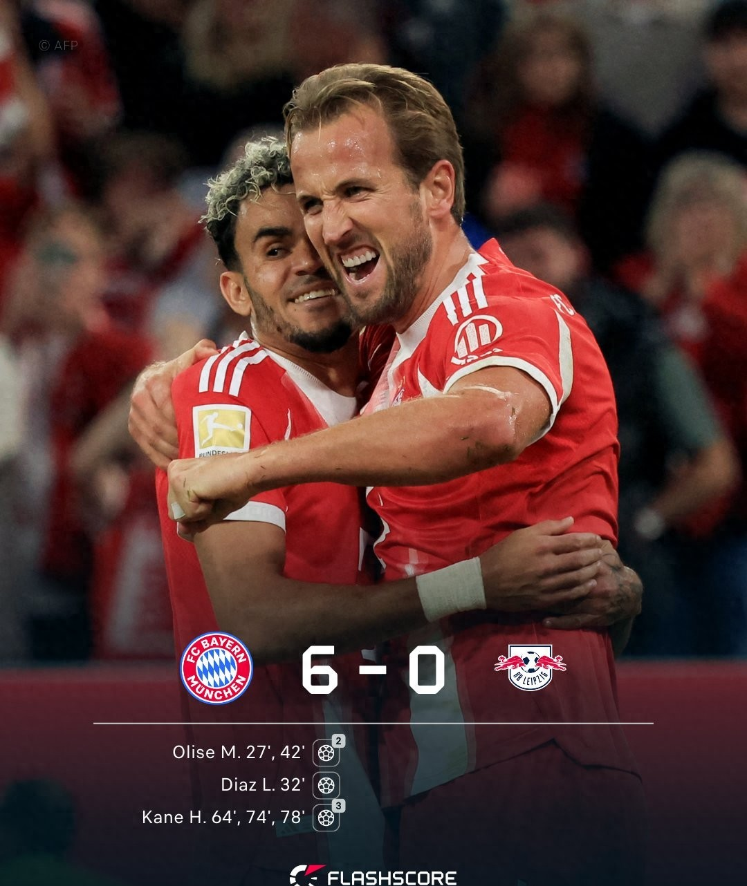 In the opening game of the new Bundesliga, the defending champion Bayern Munich, who played at home, finally defeated RB Leipzig 6-0 at home to win the first league victory in the new season with Kane's hat trick, Olise's double score and new player Dias' goal.