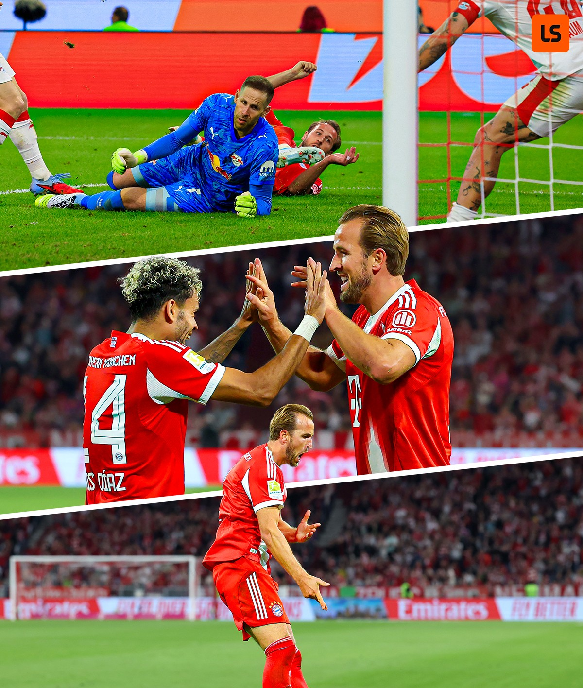 Kane's hat trick + Olise's bracelet + Diaz's first goal in his Bundesliga career. Bayern's frontcourt trident helped the team win the first victory in the new season of the Bundesliga